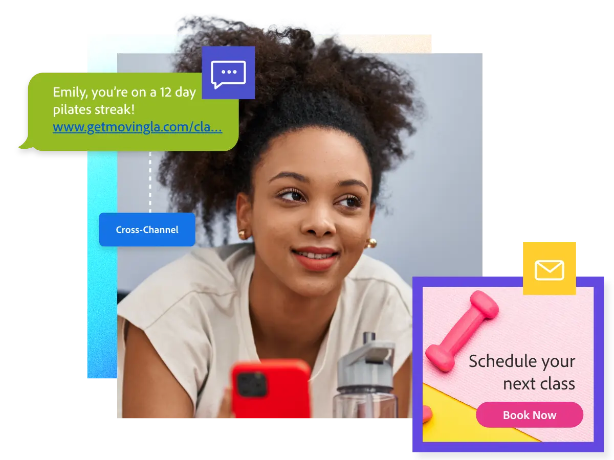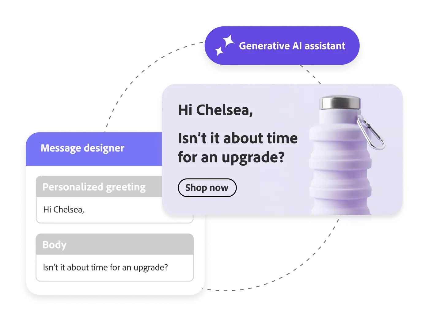 새로운 웹 기반의 UI, 생성형 AI, Adobe Experience Platform 통합을 통해 크로스채널 마케팅 캠페인을 효율적으로 제공하세요.