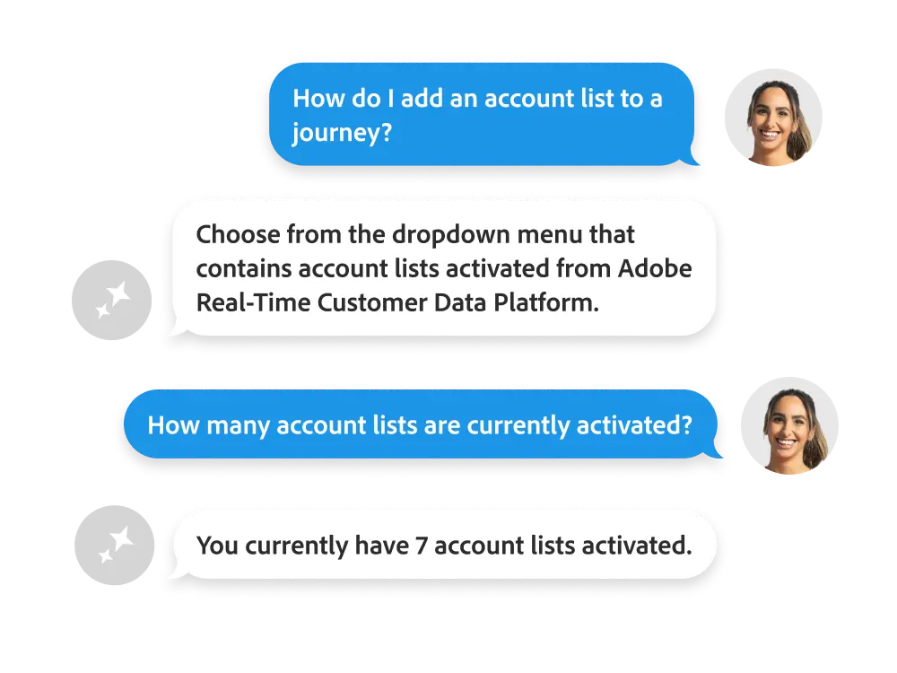 - 온디맨드 여정 인사이트. 간단한 프롬프트를 입력하여 여정 지표와 트렌드를 파악하고 시장 변화에 민첩하게 대응할 수 있습니다.