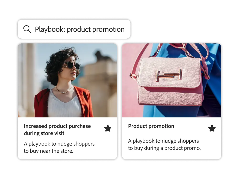 29개 이상의 고유한 여정 및 캠페인 플레이북 카탈로그를 살펴보고 몇 번의 클릭만으로 주요 활용 사례를 활성화하세요. 산업, 채널, 마케팅 목표별로 필터링하여 비즈니스에 적합한 플레이북을 찾을 수 있습니다.