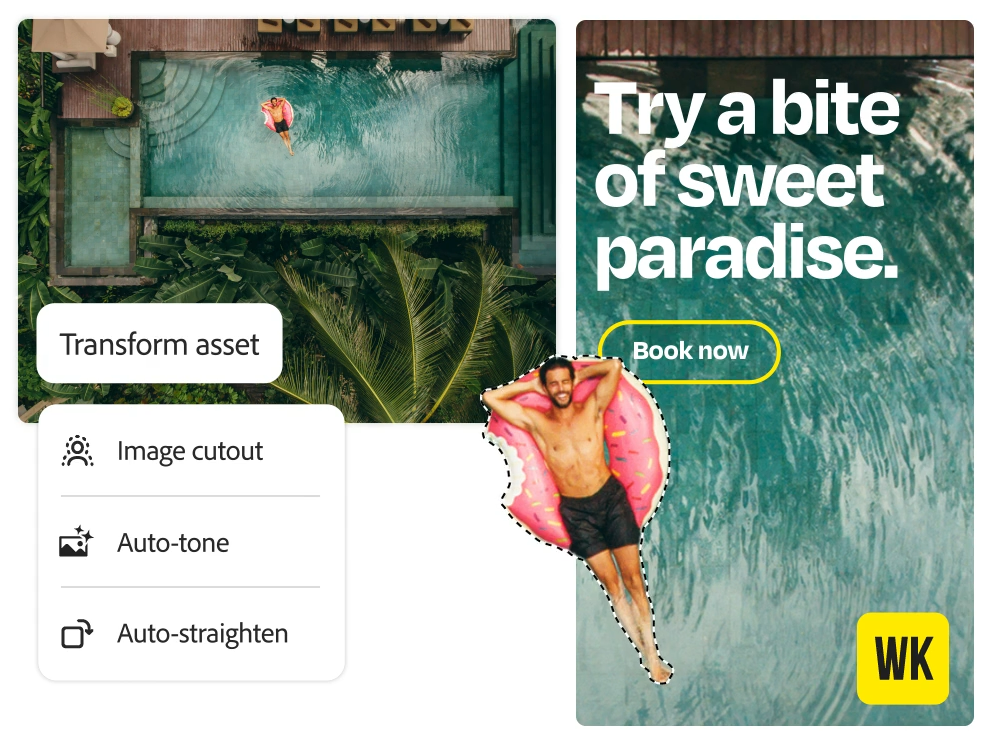 - 콘텐츠 자동화. Experience Manager Assets에서 Adobe Photoshop과 Adobe Lightroom의 자동화 기능을 이용하여 이미지에 마스크 적용, 이미지 잘라내기, 자동으로 똑바르게 하기, 자동 톤 조정 등 다양한 작업을 할 수 있습니다.