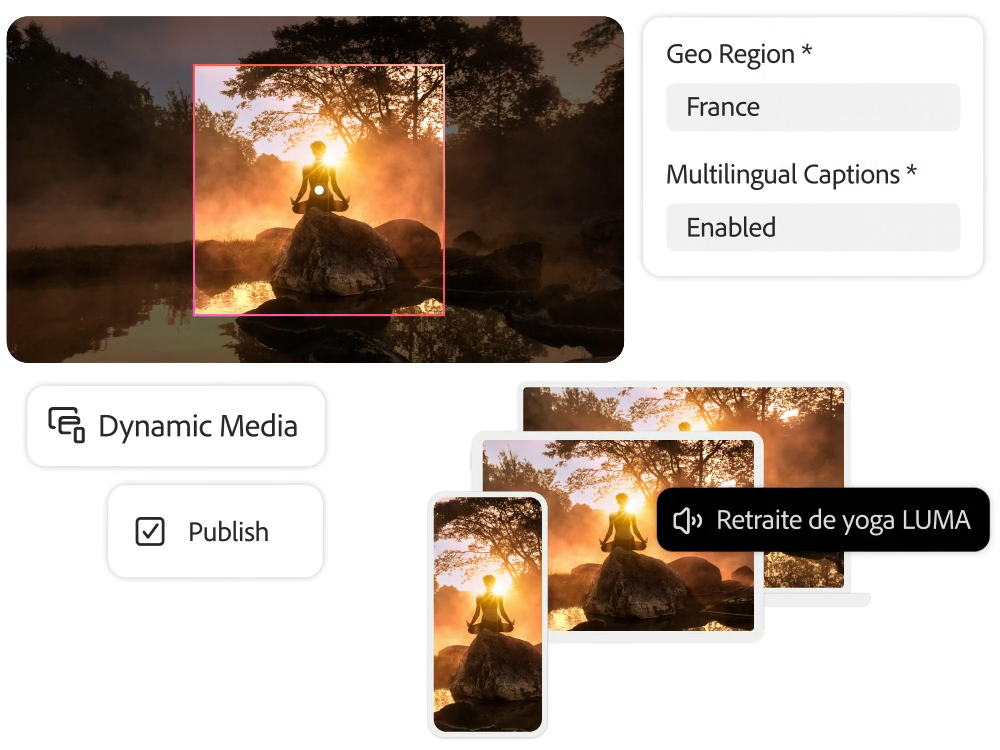 콘텐츠를 다양한 버전으로 무제한 생성하여 모든 채널에서 개인화되고 현지화된 경험을 제공할 수 있습니다. Experience Manager Assets는 영상, 3D 등 리치 미디어와 이미지를 포함하여 다양한 화면에 맞게 콘텐츠를 최적화, 재구성, 변형할 수 있는 자동화 기능과 툴을 제공합니다.