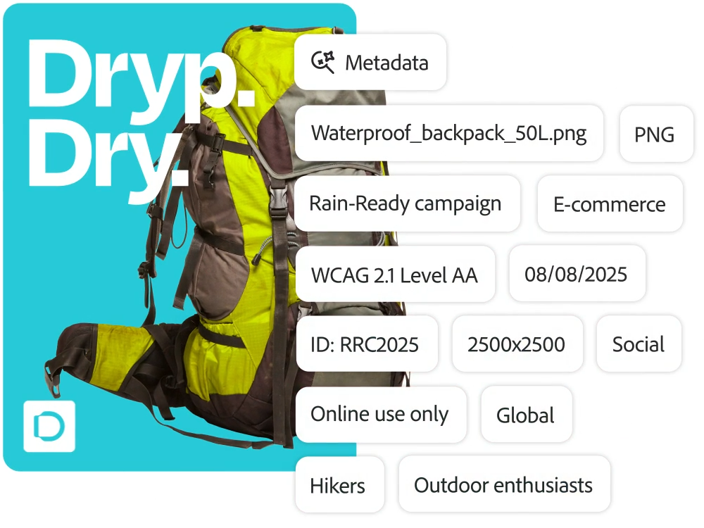 - 즉시 사용 가능한 변형 버전. 포맷, 해상도, 자르기, 효과를 조정해 하나의 마스터 파일에서 에셋 버전을 무제한으로 자동 생성하여 다양한 채널 또는 화면에 맞게 여러 버전을 만들 수 있습니다. 맞춤 변형 버전을 생성하여 DAM의 모든 사용자가 작업 중인 에셋에 적용할 수 있는 고유의 크기를 정의할 수도 있습니다.
