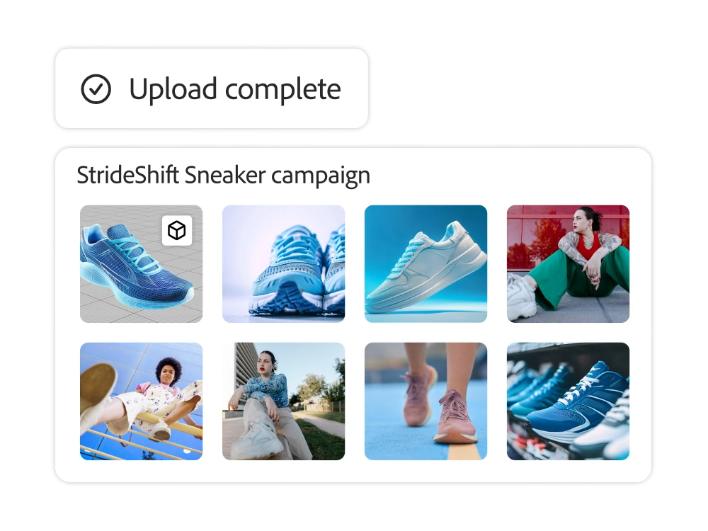 대량 수집을 통해 또는 스토리지 애플리케이션과 연결하여 3D 등 리치 미디어를 포함한 모든 유형의 에셋을 디지털 에셋 관리 시스템에 업로드하고 한곳에서 모든 에셋을 관리할 수 있습니다.