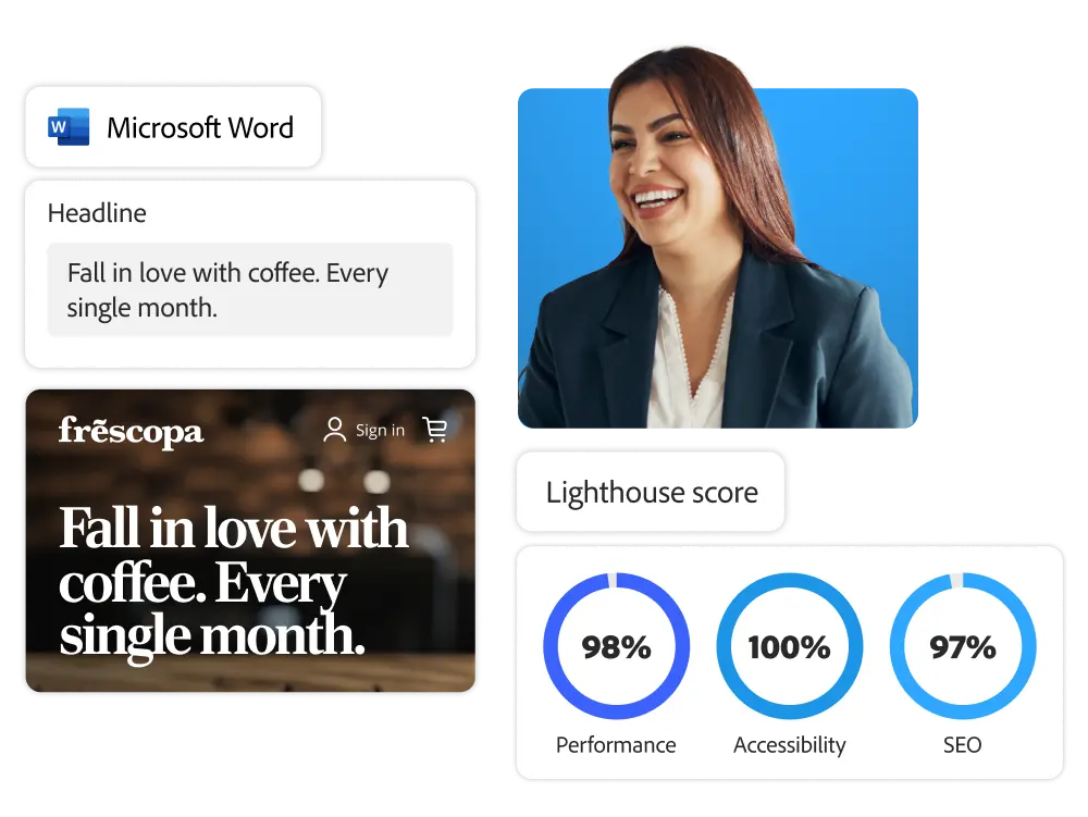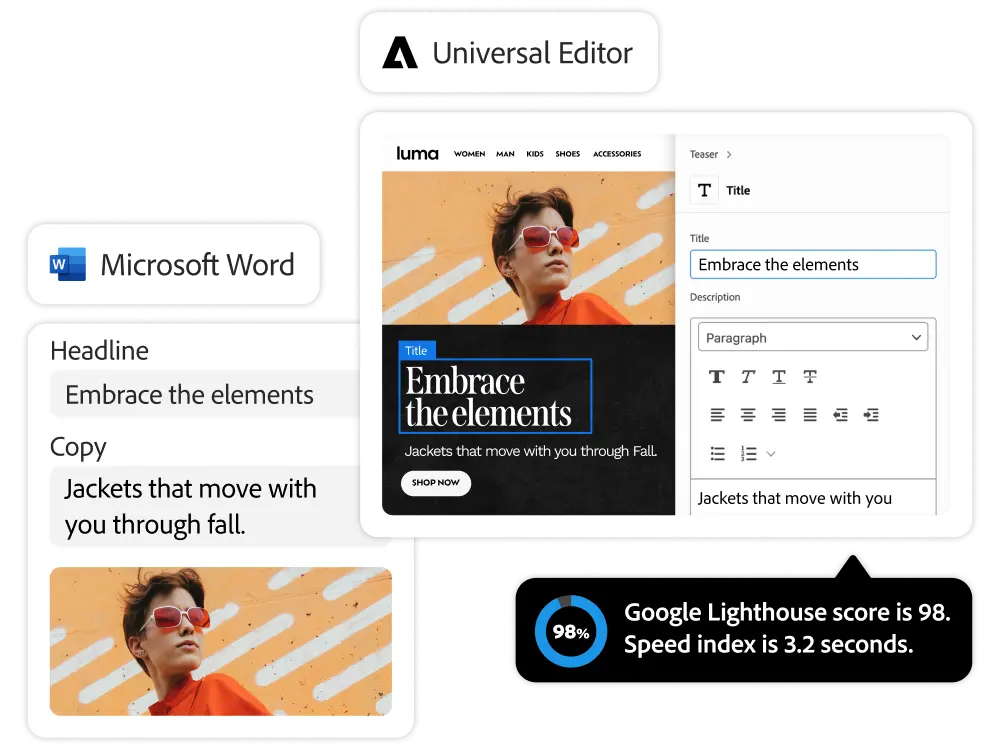 Edge Delivery Services를 사용하면 Experience Manager Sites에서 표준 편집기와 문서 기반의 콘텐츠 제작 툴을 통해 고객 경험이 소비되는 지점과 가장 가까운 네트워크에 콘텐츠를 전달하여 지연 시간을 줄이고 로딩 속도를 높일 수 있습니다.
