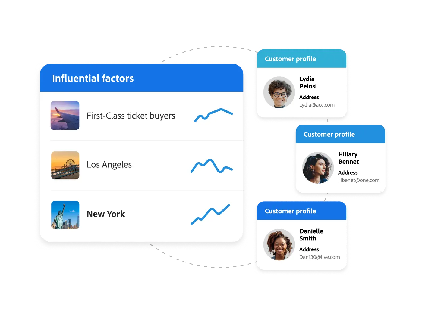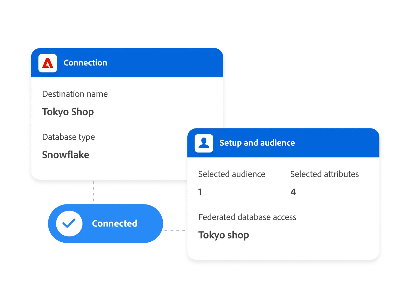 통합 오디언스 구성을 사용하면 마케터는 파트너 및 외부 소스의 고객 프로파일을 결합하여 오디언스를 강화할 수 있습니다. 이를 통해 일괄 데이터와 실시간 데이터를 모두 사용하여 타겟팅 효과를 더 높일 수 있습니다. 자체 고객 데이터를 외부 데이터 웨어하우스 같은 소스의 데이터와 통합하여 더 나은 오디언스를 구축하세요.